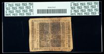 Continental Currency Jan. 14, 1779 $3. PCGS Fine 15 Apparent. Although tape repaired splits resulted in an Apparent grade, the red and black emblem retains nice eye appeal for the grade.