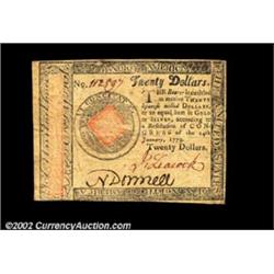 Continental Currency January 14, 1779 $20 Choice Extremely Fine. A bright and appealing example, wit