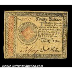 Continental Currency January 14, 1779 $20 Choice Very Fine. Well signed, well centered and problem f