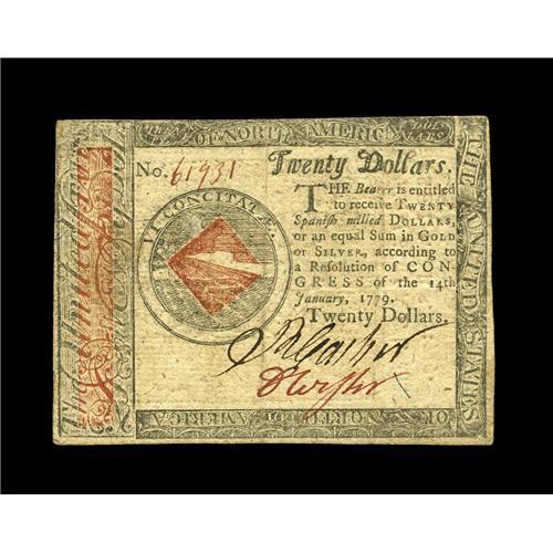 Continental Currency January 14, 1779 $20 XF Continental Currency January 14, 1779 $20 Extremely Fin