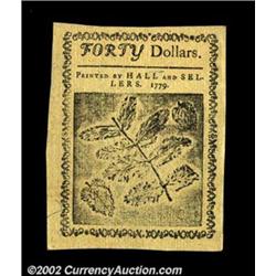 Continental Currency January 14, 1779 $40 Gem New. This is a bright, fresh, well-signed example of the final issue of Continental Currency. Every feature of this well-centered note is razor sharp, imparting incredible eye appeal. All Continentals are very hard to find in this ultimate degree of preservation. Important notice: We expect to be auctioning lots at the rate of 200-250 per hour. Sometimes eBay Premier live bid software cannot keep up with that pace, so we strongly recommend that you place a realistic proxy bid now as insurance to avoid disappointment. Also please note that all Heritage/CAA lots purchased through eBay Premier carry a 20% Buyer's Premium. Please make sure you read the Terms and Conditions.