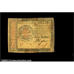 Continental Currency January 14, 1779 $5 Very Fine. A nice, lightly circulated example from this eleventh and final issue of Continental Currency. Important notice: We expect to be auctioning lots at the rate of 200-250 per hour. Sometimes eBay Premier live bid software cannot keep up with that pace, so we strongly recommend that you place a realistic proxy bid now as insurance to avoid disappointment. Also please note that all Heritage/CAA lots purchased through eBay Premier carry a 20% Buyer's Premium. Please make sure you read the Terms and Conditions.