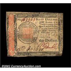 Continental Currency January 14, 1779 $60 Very Fine. The note is net graded due to light staining an