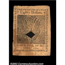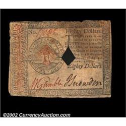 Continental Currency January 14, 1779 $80 Counterfeit Very Fine. There is a diamond-shaped cancel ne