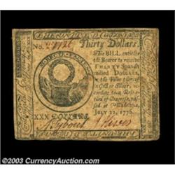 Continental Currency July 22, 1776 $30 Choice Very Fine.
