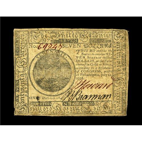 Continental Currency July 22, 1776 $7 Extremely Fine. A Continental Currency July 22, 1776 $7 Extrem