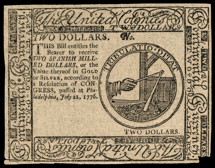 July 22, 1776 Continental Two Dollars Blue Detector Note