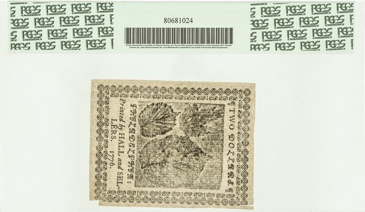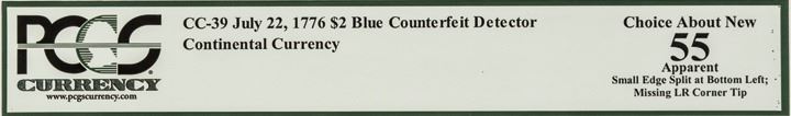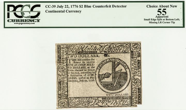Continental Currency July 22, 1776 Two Dollars Blue Detector PCGS Ch Abt New-55