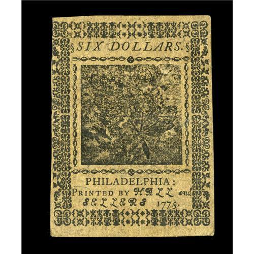 Continental Currency May 10, 1775 $6 Very Choice New. A Continental Currency May 10, 1775 $6 Very Ch