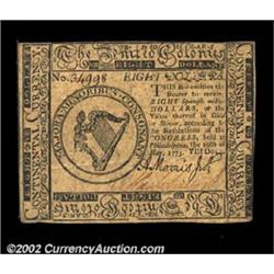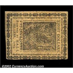 Continental Currency May 10, 1775 $8 Choice About New. A really lovely example, with better-than-ave