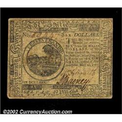 Continental Currency May 20, 1777 $6 Choice Extremely Fine. A very nice lightly circulated example f