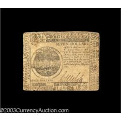 <TABLE cellSpacing=0 cellPadding=0 width="100%" bgColor=#000000 border=0><TBODY> <TR><TD width="100%"><TABLE cellSpacing=1 cellPadding=3 width="100%" border=0><TBODY><TR><TD width="100%" bgColor=#79735c><FONT face=arial color=#ffffff size=3><B>Description</B> </FONT></TD></TR><TR><TD width="100%" bgColor=#ffffff><FONT face=arial size=2><B>Continental Currency May 20, 1777 $7 Very Fine.</B></I> A nice example from this much scarcer Continental Issue. (250--up) </FONT></TD></TR></TBODY></TABLE></TD></TR></TBODY></TABLE><BR><TABLE cellSpacing=0 cellPadding=0 width="100%" bgColor=#000000 border=0><TBODY><TR> Important notice: Heritage usually auctions material at the rate of 200-250 lots per hour. On some occasions eBay Live bid software or the Internet may not be able to keep up with the pace of the auction. We recommend placing a realistic absentee bid now as insurance to avoid disappointment. Occasionally the auctioneer may eliminate or reject an eBay Live bid, and the auctioneer may also reopen a lot after the close of the eBay live bidding (usually because we missed an audience bid), and may reject your bid even if it shows you as the winning bidder. By bidding via eBay Live, you agree that Heritage may award the lot to another bidder at its sole discretion under the circumstances described above or any other reasonable circumstances. Also please note that all Heritage lots purchased through eBay Live carry a 20% Buyer's Premium. Please make sure you read the Terms and Conditions before you bid.</TR></TBODY></TABLE>