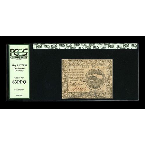 Continental Currency May 9, 1776 $4 PCGS Choice New 63P Continental Currency May 9, 1776 $4 PCGS Cho