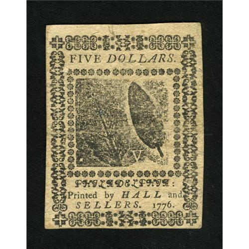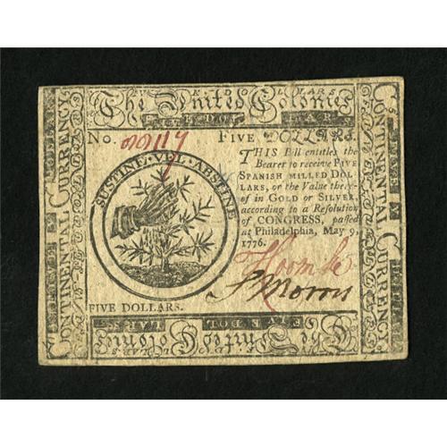 Continental Currency May 9, 1776 $5 Very Fine.