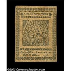 Continental Currency November 2, 1776 $3 Extremely Fine.