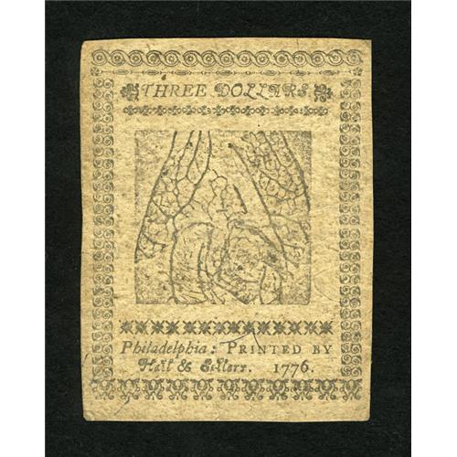 <B>Continental Currency November 2, 1776 $3 Extremely Fine.</B></I> A simply flawless example for the grade, with excellent margins, good signatures, good print quality and not a hint of a problem.<BR><BR><b>Shipping:</b> Coins & Currency (<a target="_blank" href="http://www.heritageauctions.com/common/shipping.php">view shipping information</a>)