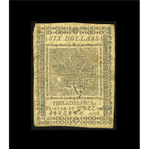<B>Continental Currency November 2, 1776 $6 Fine.</B></I> The edges are sound on this note.<BR><BR><b>Shipping:</b> Coins & Currency (<a target="_blank" href="http://www.heritageauctions.com/common/shipping.php">view shipping information</a>)