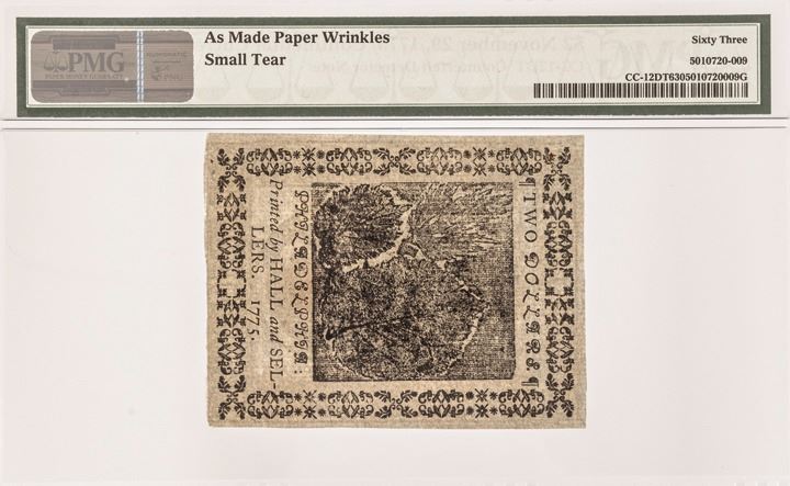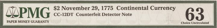 Continental November 29, 1775 $2 Blue Detector Note PMG Graded Choice Uncirculated-63