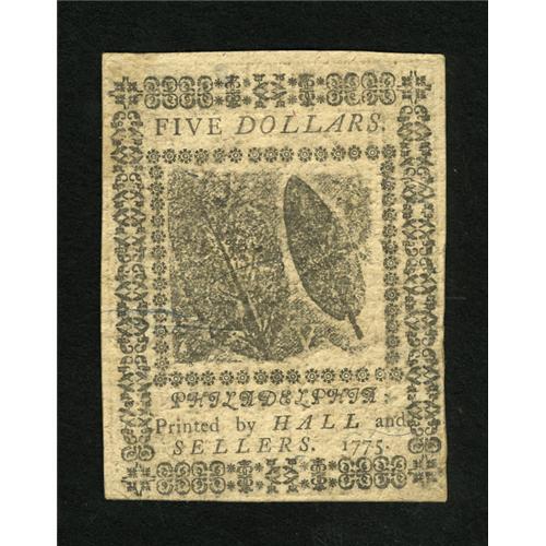 Continental Currency November 29, 1775 $5 About