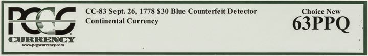 Continental Currency. Sept 26, 1778 $30 Blue Paper Detector, PCGS Ch. New-63PPQ