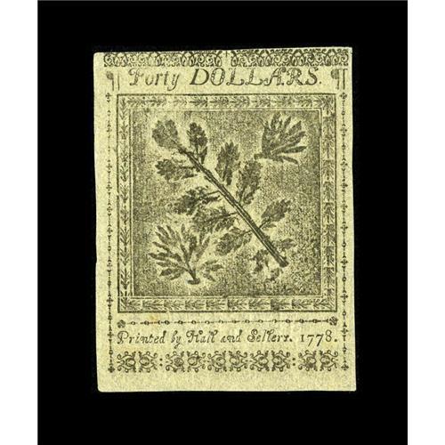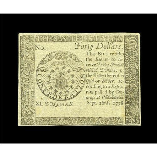 Continental Currency September 26, 1778 $40 Blue Counte