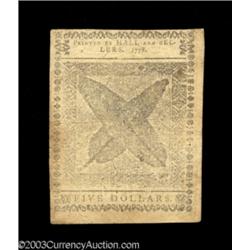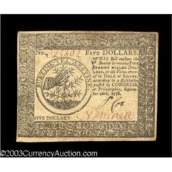 Continental Currency September 26, 1778 $5 Extremely Fine.