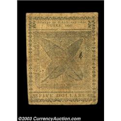 Continental Currency September 26, 1778 $5 Very Fine-Extremely Fine.