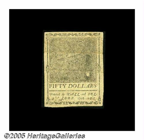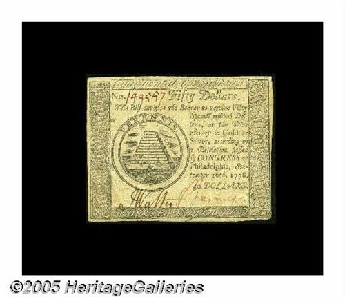 Continental Currency September 26, 1778 $50 About
