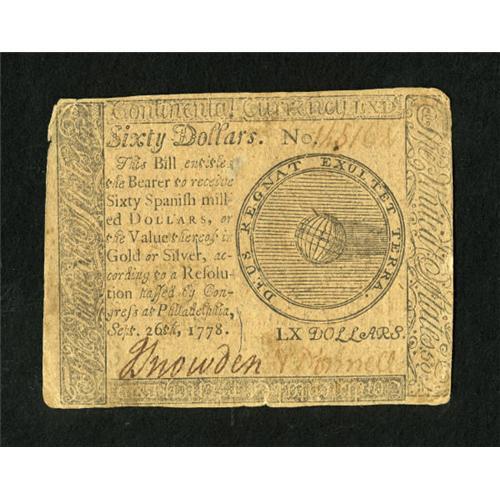 Continental Currency September 26, 1778 $60