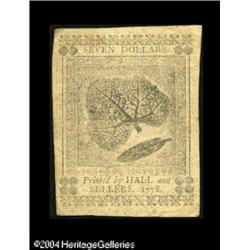 Continental Currency September 26, 1778 $7 Extremely <B>Continental Currency September 26, 1778 $7 Extremely Fine.</B></I> A handsome lightly circulated example. <BR><BR><B>Important notice:</B> Heritage usually auctions material at the rate of 200-250 lots per hour. On some occasions eBay Live bid software or the Internet may not be able to keep up with the pace of the auction. We recommend placing a realistic absentee bid now as insurance to avoid disappointment. Occasionally the auctioneer may eliminate or reject an eBay Live bid, and the auctioneer may also reopen a lot after the close of the eBay live bidding (usually because we missed an audience bid), and may reject your bid even if it shows you as the winning bidder. By bidding via eBay Live, you agree that Heritage may award the lot to another bidder at its sole discretion under the circumstances described above or any other reasonable circumstances. Since eBay bids are not shown to us until we open the lot on the floor, we treat those bids just like floor bids. In most cases the floor responds before the eBay bid is presented to us, due to Internet lag time, so for consistency we have made it a policy that floor bids are always considered first over tie eBay live bids. Also please note that all Heritage lots purchased through eBay Live carry a 20% Buyer's Premium. Please make sure you read the Terms and Conditions before you bid. This lot is being auctioned in conjunction with a live floor auction by Heritage Galleries & Auctioneers. All final auction and invoice information will be supplied by Heritage Galleries & Auctioneers, and all other information should be considered preliminary. Lot:15060