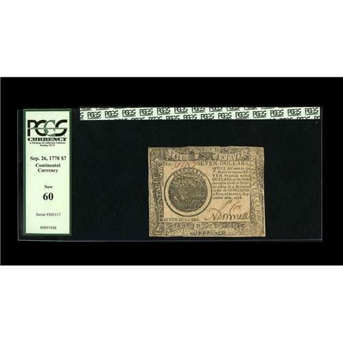 Continental Currency September 26, 1778 $7 PCGS New 60. Continental Currency September 26, 1778 $7 P