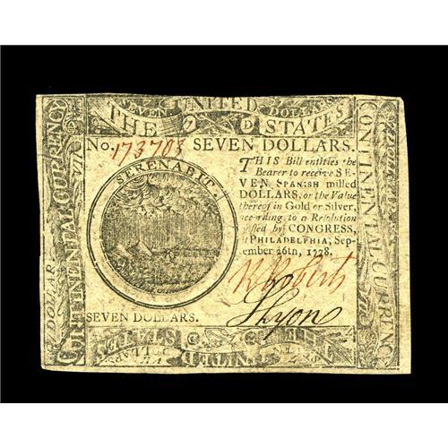 Continental Currency September 26, 1778 $7 Very Choice Continental Currency September 26, 1778 $7 Ve