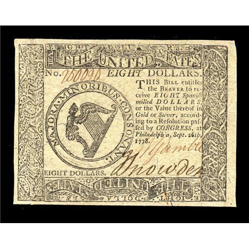 Continental Currency September 26, 1778 $8 Choice About Continental Currency September 26, 1778 $8 C