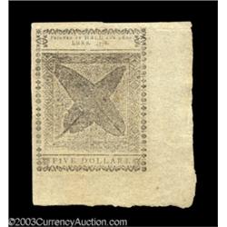 Continental Currency September 26, 1778 Blue Counterfeit Detector $5 Very Choice New.
