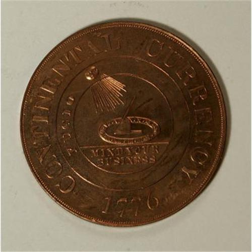 <B>Continental Dollar Restrikes, 3 Different Metals.</B></I> This lot consists of three Continental dollar restrikes in bronze, goldine, and white metal, the 1961 issues struck from the original dies used by Dickeson. These are similar to <B>HK-853 </B></I>and <B>HK-854; </B></I>there is no Hibler-Kappen number for the goldine example. All have a prooflike appearance.<BR><BR><b>Shipping:</b> Coins & Currency (<a target="_blank" href="http://www.heritageauctions.com/common/shipping.php">view shipping information</a>)