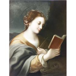 Continental Porcelain Plaque of a Saint, Last Quarter 19th Century, Set within a giltwood fra...
