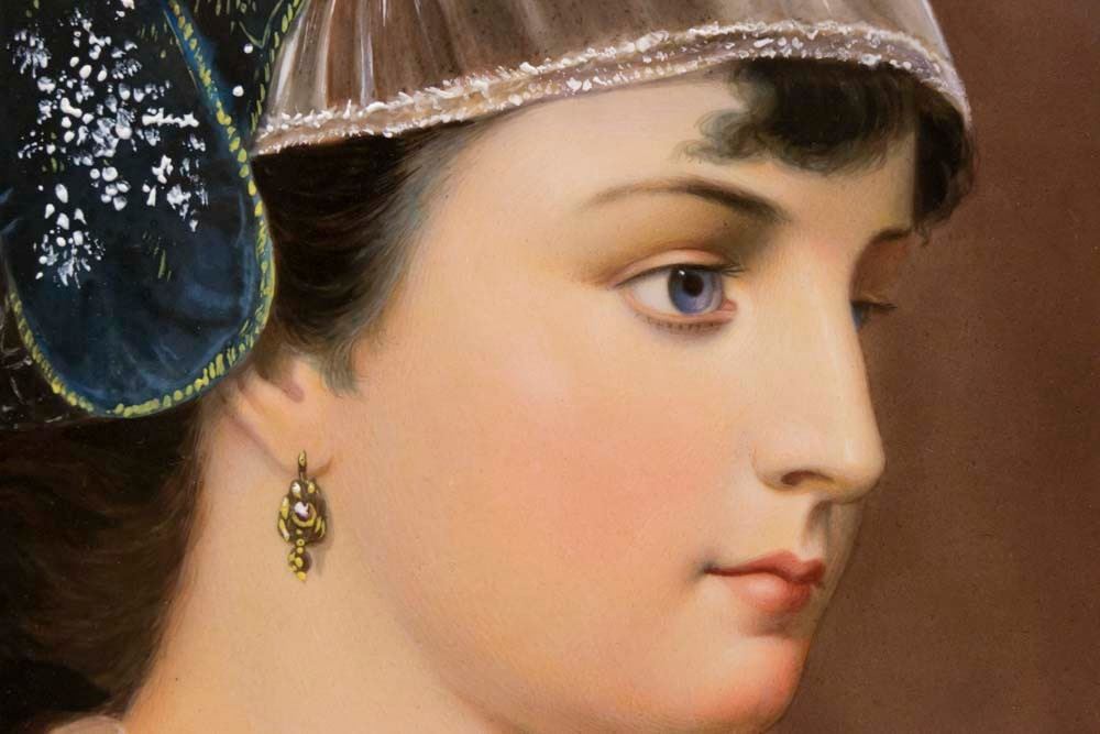 Depicting a young beauty. Approx. 20" diameter.