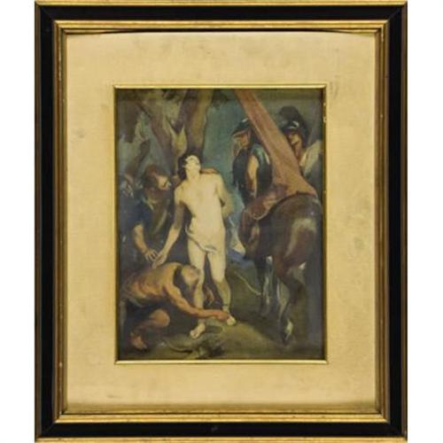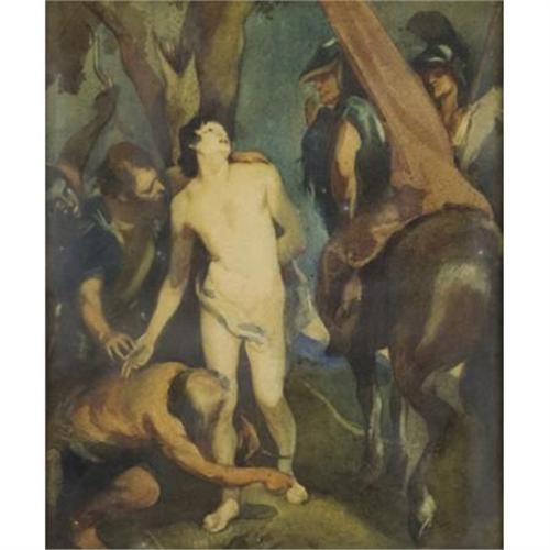 <B>CONTINENTAL SCHOOL</B></I><BR><I>St. Sebastian</B></I><BR>Watercolor on paper<BR>12-1/2 x 9-1/2 inches (31.8 x 24.1 cm)<BR> <BR><BR><b>Shipping:</b> Framed - with Glass, Medium (<a target="_blank" href="http://www.heritageauctions.com/common/shipping.php">view shipping information</a>)