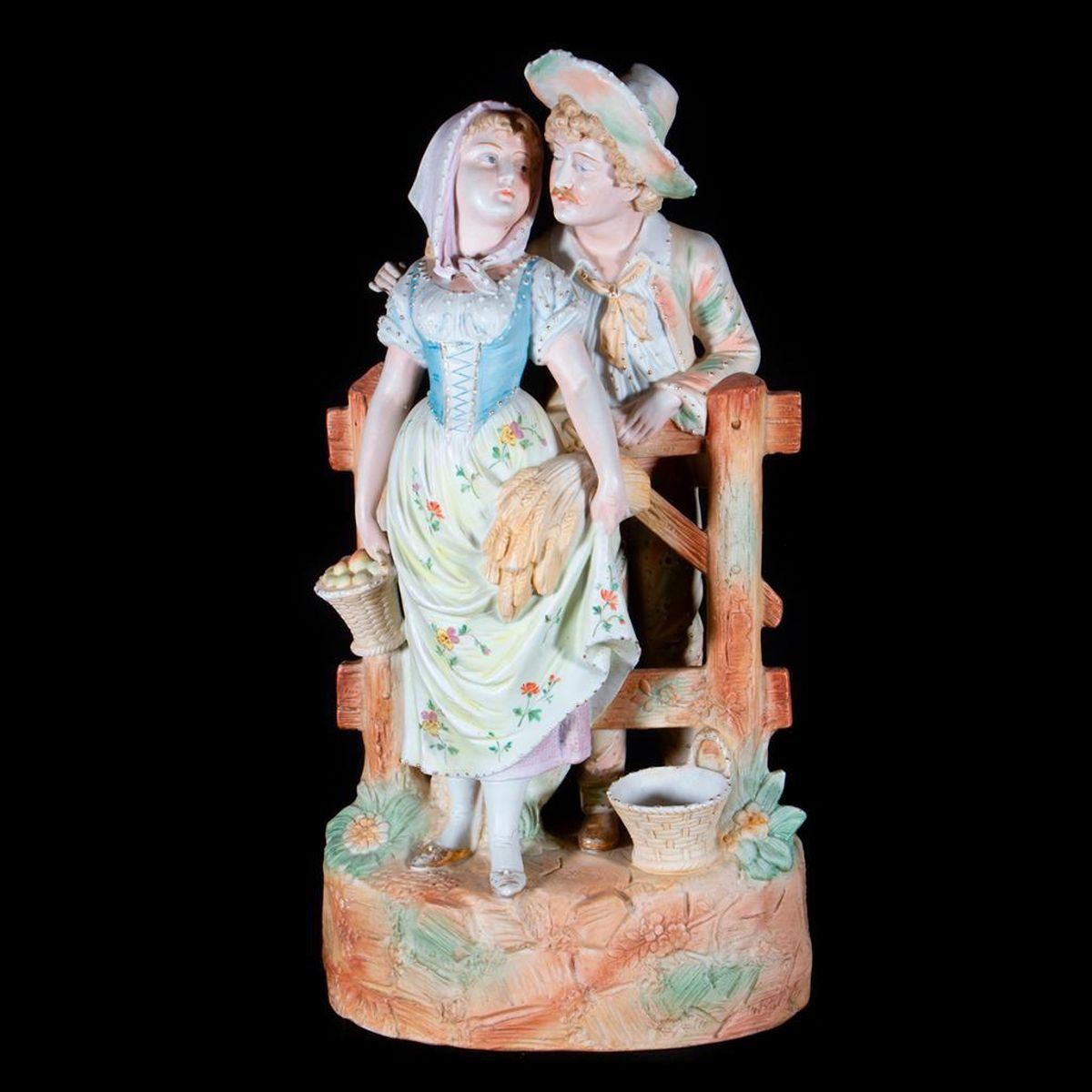 A pair of Continental bisque lovers. H- 16" W- 8" D- 4". Conditiion: Very good.