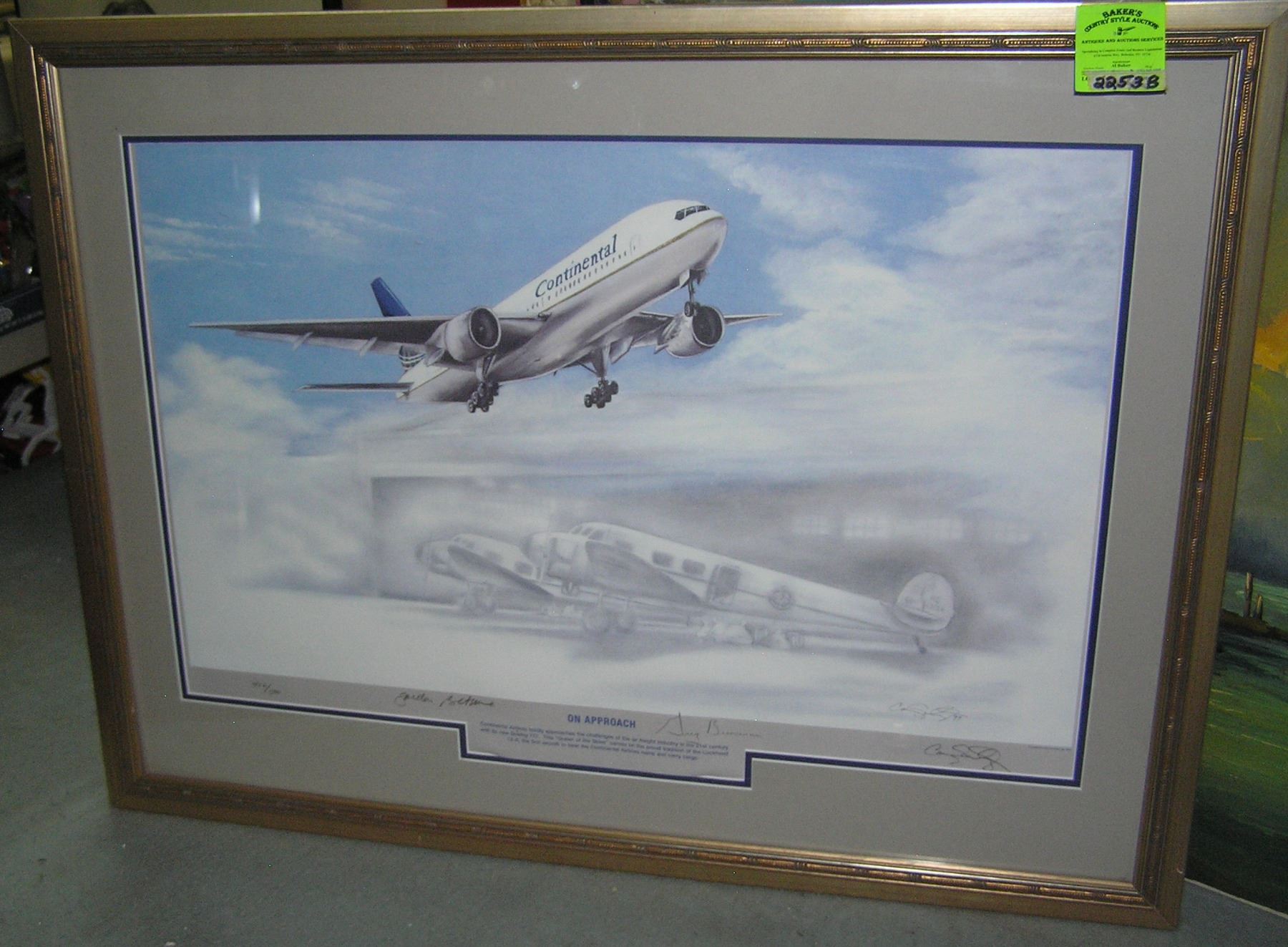 Contnental Airlines vintage print titled On Approach number 422 of 500 multi signed by the artist and executives est. value $600.00-$800.00