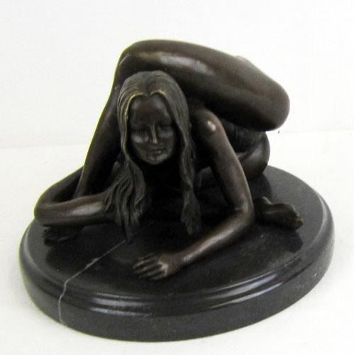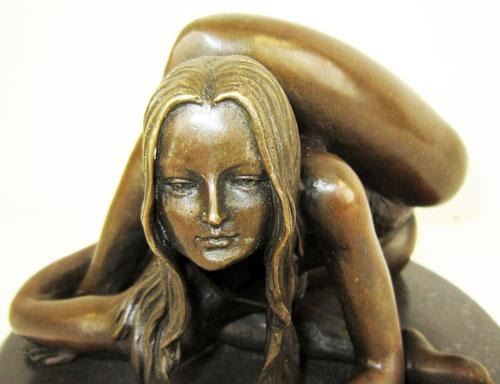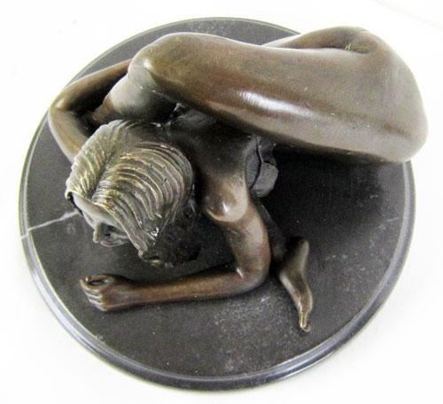 Contortionist bronze sculpture on marble base. Dimensions for sculpture from top to bottom: Height 5 X Width 7 inches.