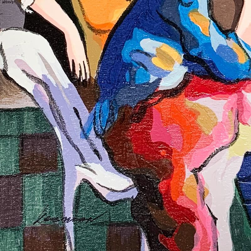 "Conversation" is a limited edition serigraph on paper by Michael Kerman. It is numbered and hand signed and includes a letter of authenticity. Measures approximately 12" x 14.5" (image).