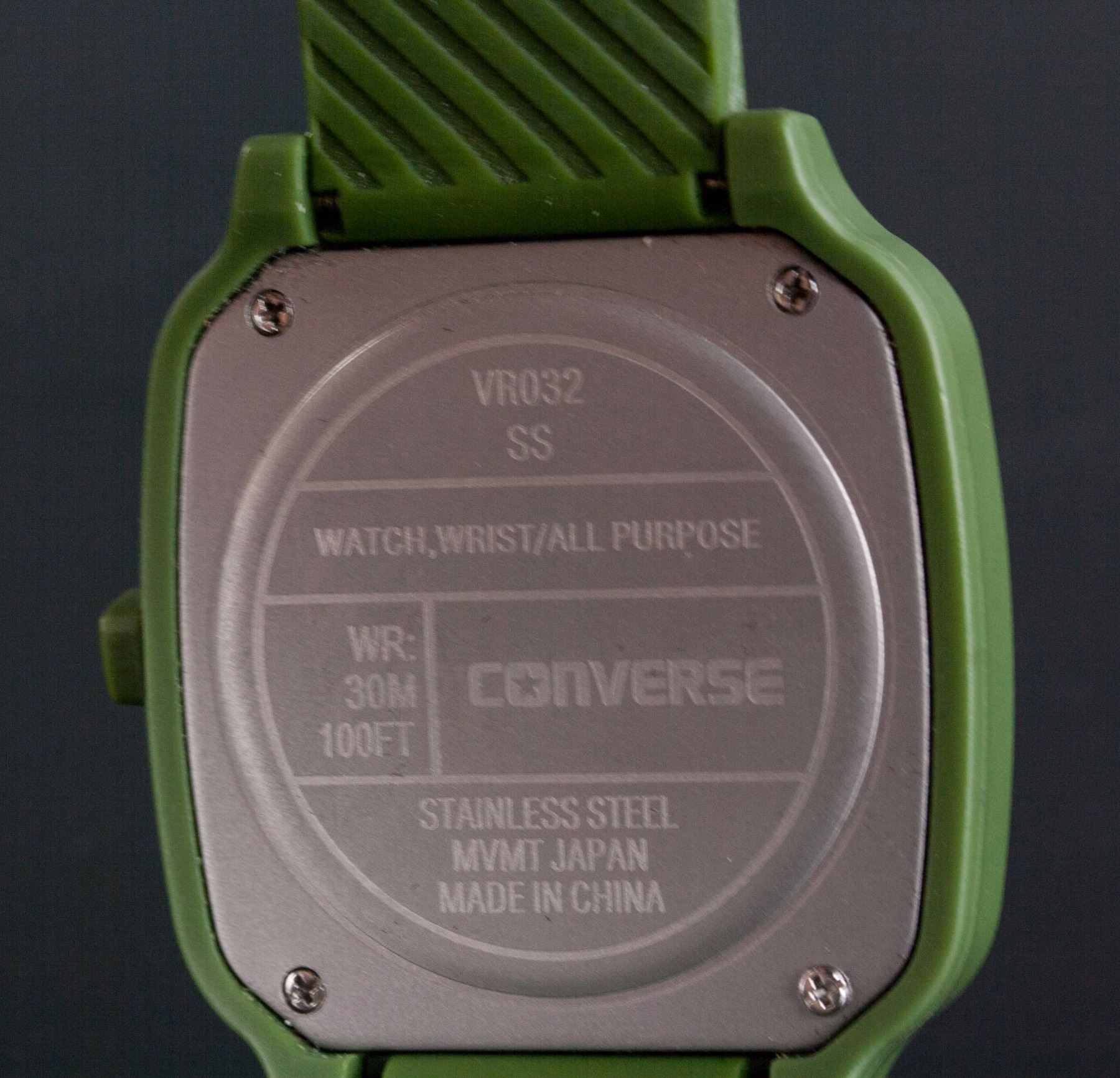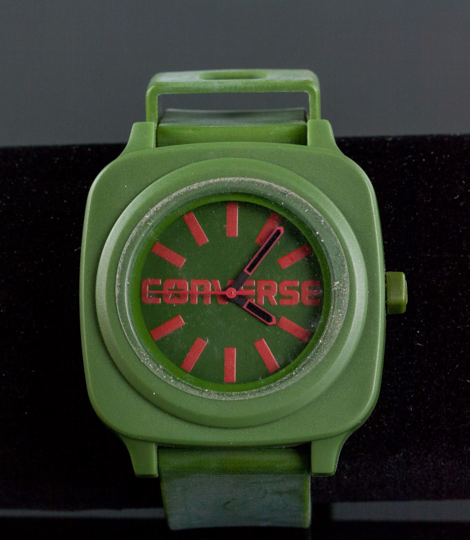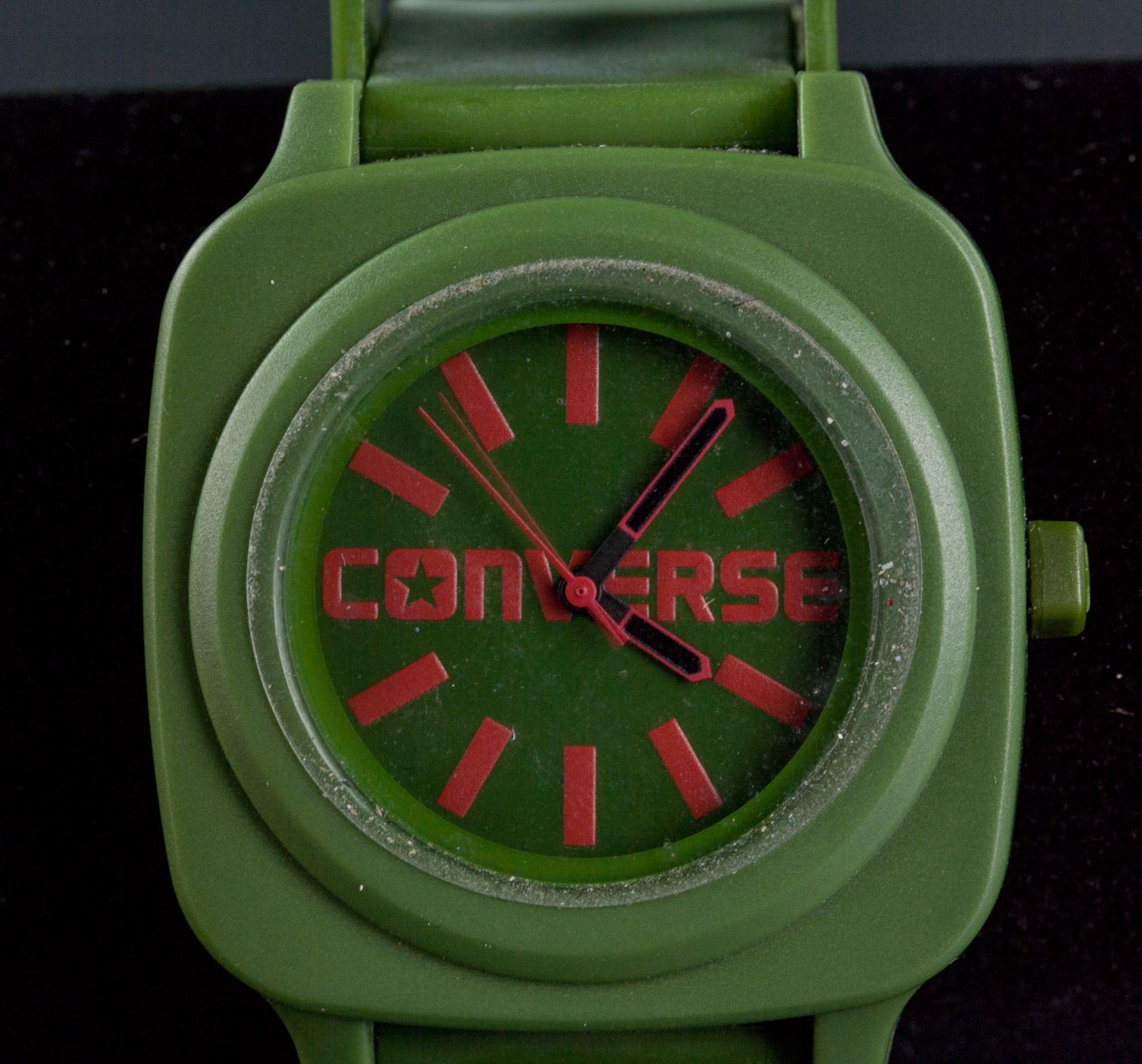 Converse men's watch; green rubber strap; green dial and plastic case; D: 2.6 cm, 38 grams