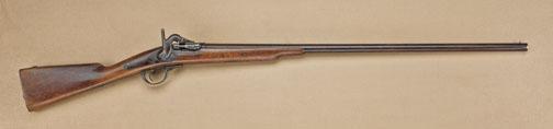 Conversion of French musket to breech loading 12ga marked “Zulu”. 51-1/8” overall, 35” barrel, fair to poor condition, missing firing pin. Heavily worn and used. These were assembled by Bannerman and other dealers from military parts and marketed all over the world, including Africa. Est: $150 - $300