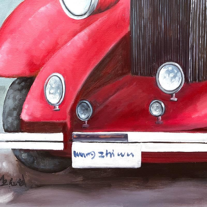 "Convertible Classic" is an original mixed media painting on canvas by Wang, hand signed by the artist. This piece comes gallery wrapped. Includes Letter of Authenticity. Measures approx. 44" x 55" (image). There is very minor wear on the corners and edges.