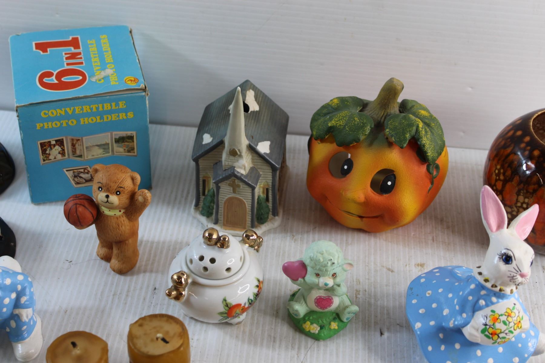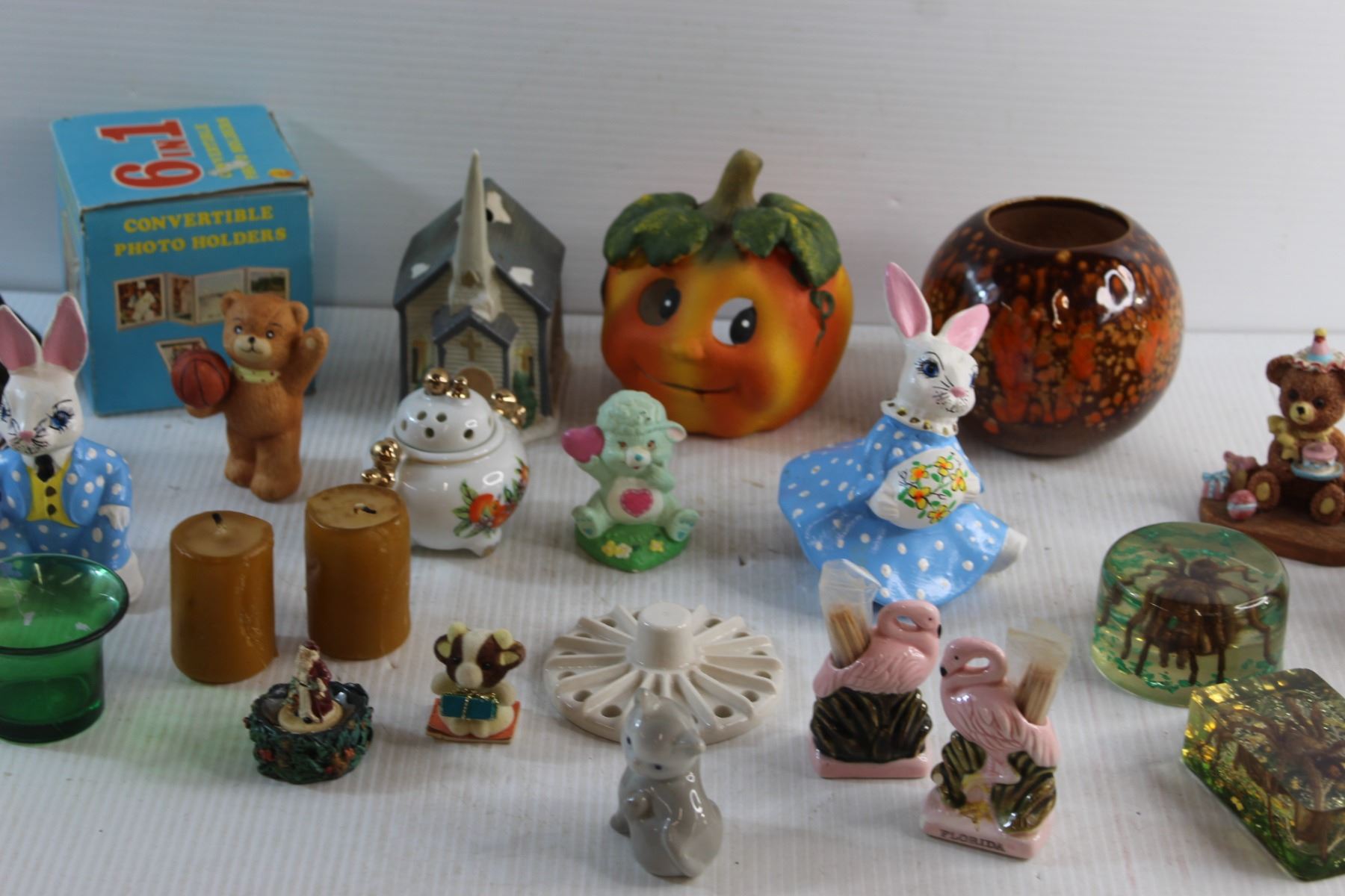 Convertible Photo Holders, Candle Holders, Ceramic Ornaments and Spiders in Resin