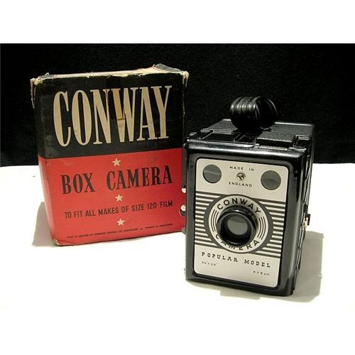 Conway Camera Popular Model. Takes pictures 6x9 cm. In very good conditions, with the box and the manual included. The mechanism works perfect. Made in England.