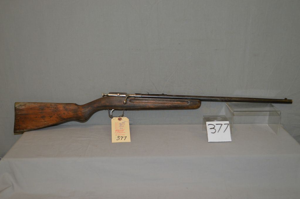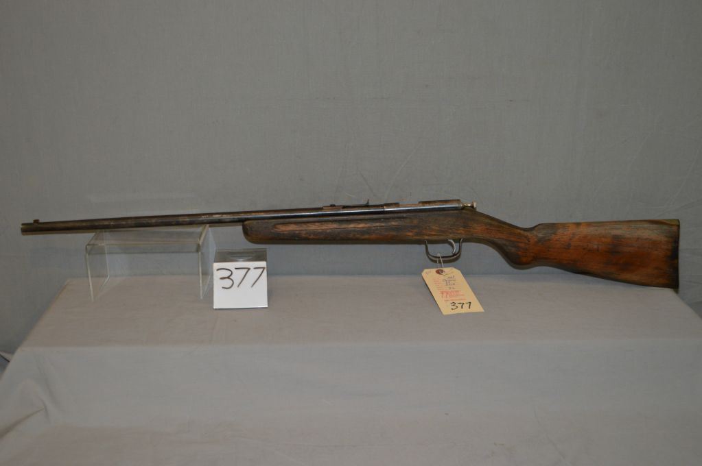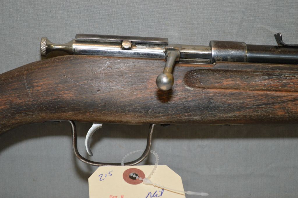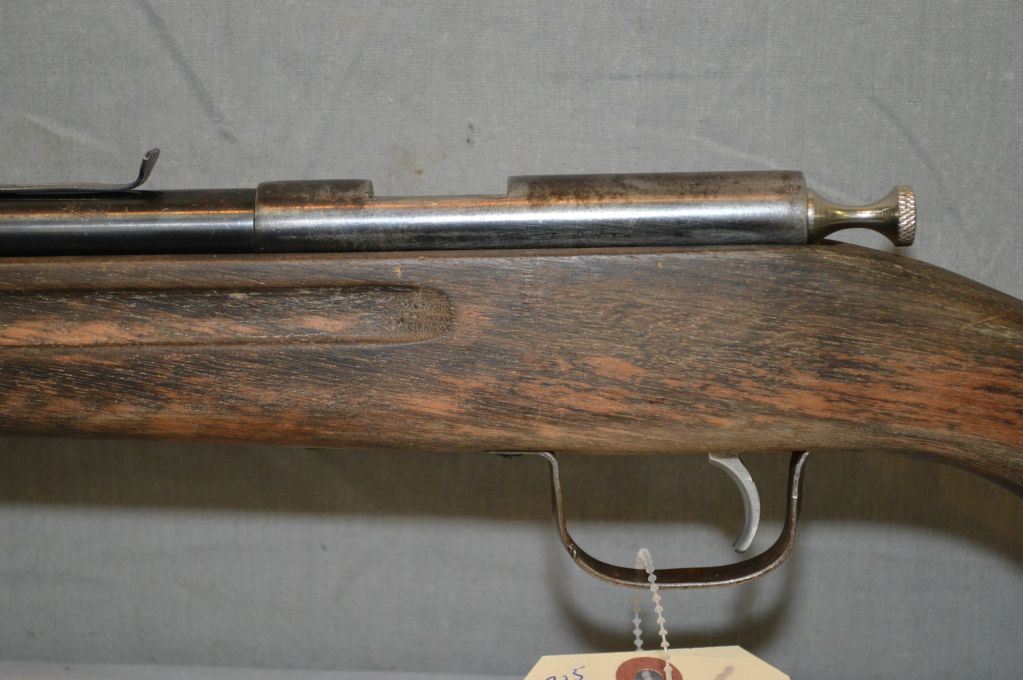 Cooey By WInchester Model 39 .22 LR cal Single Shot Bolt Action Rifle w/ 22" bbl [ fading blue finish, barrel sight missing the lift, rounded pistol grip stock w/fluted forend, metal butt plate, note : bolt knob braised on ( 117) ] Ser # Nil