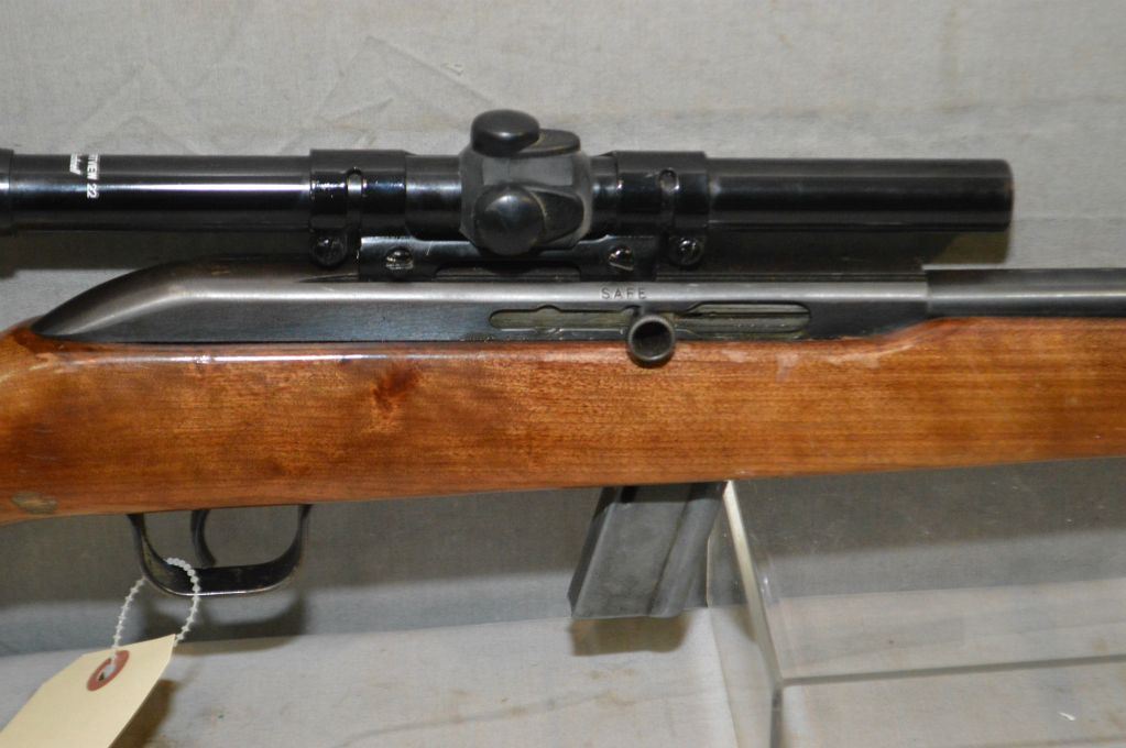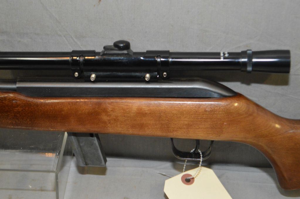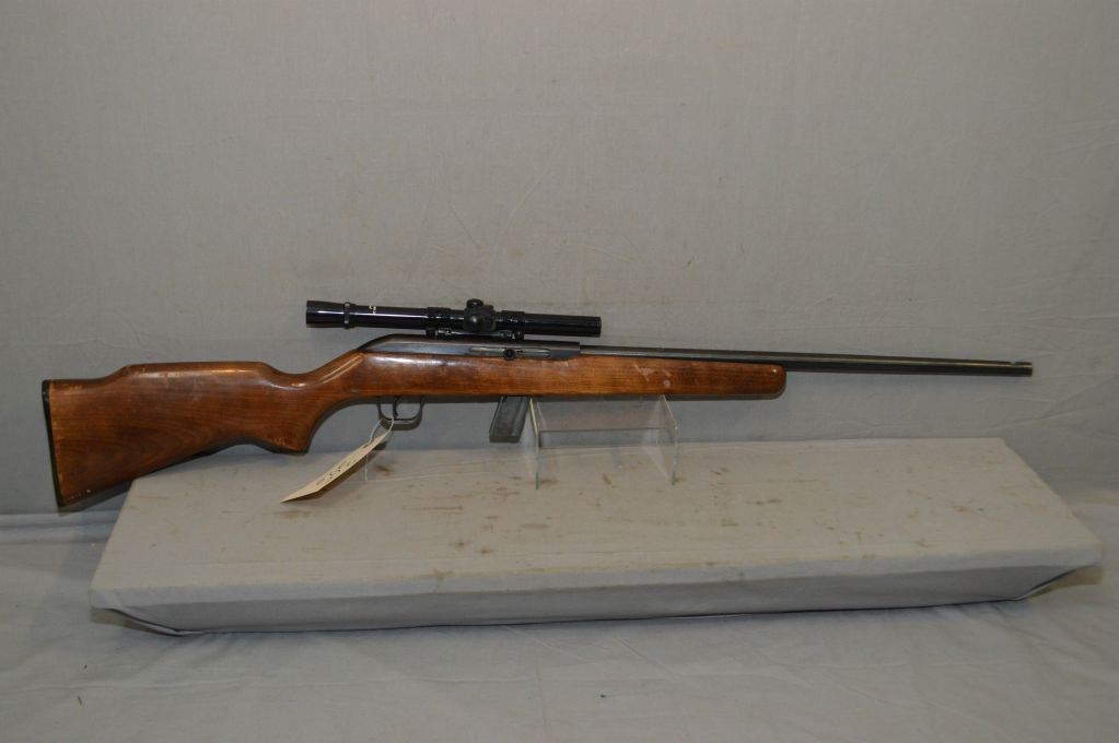 Cooey By Winchester Model 64B .22 LR Cal Mag Fed Semi Auto Rifle w/ 20 1/4" bbl [ blued finish, barrel sights removed, but fitted w/ Bushnell 4X Sport View .22 Scope, pistol grip stock w/some marks, faded grey toned mag ] Ser # CA 099400