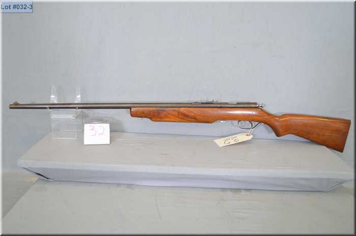 Cooey Mod 75 .22 LR cal single shot bolt action Rifle w/ 27" bbl [ fading blue finish turning brown, trigger guard & other parts appear to be nickeled, pistol grip stock, metal butt plate ] Ser # Nil